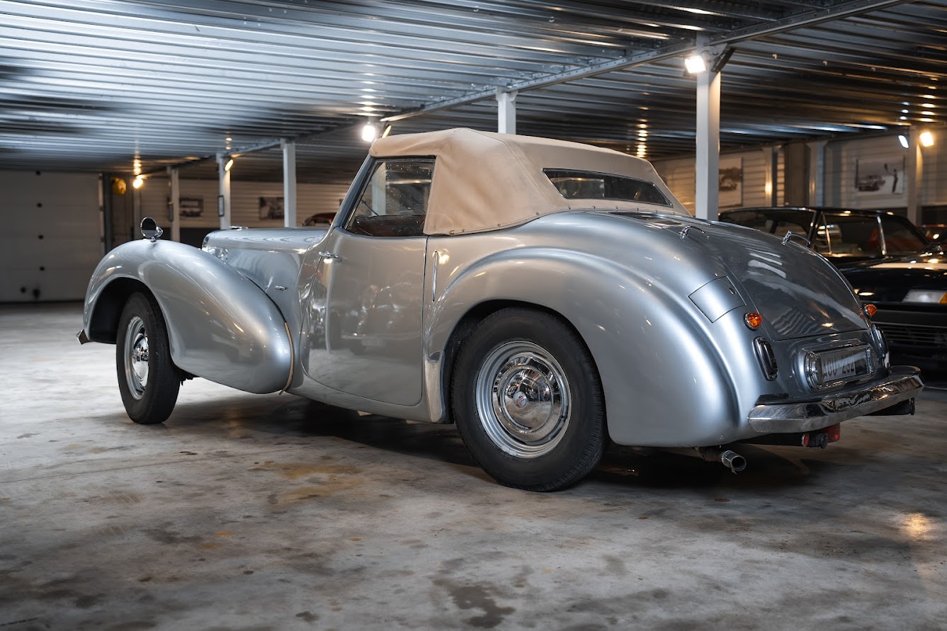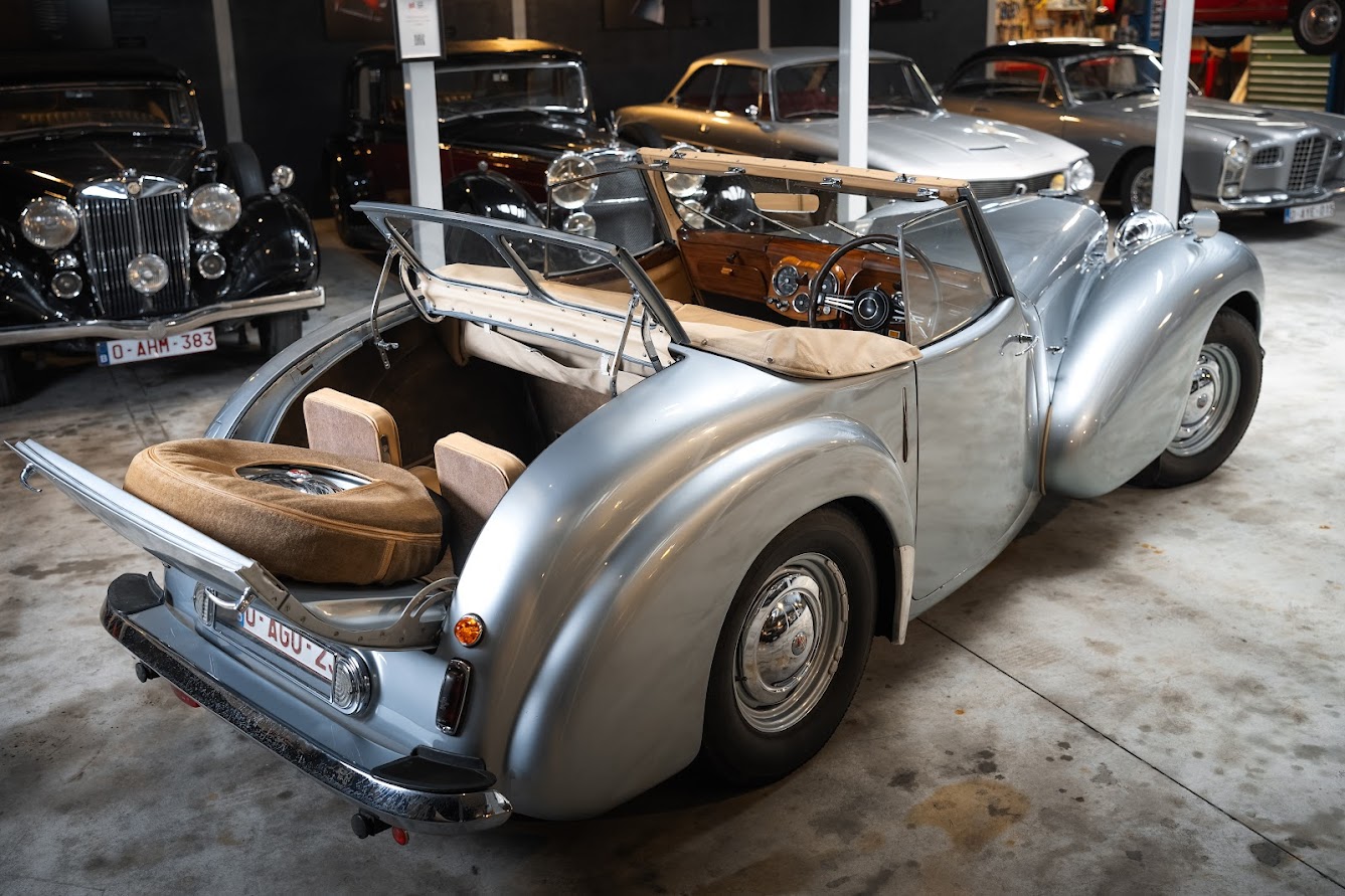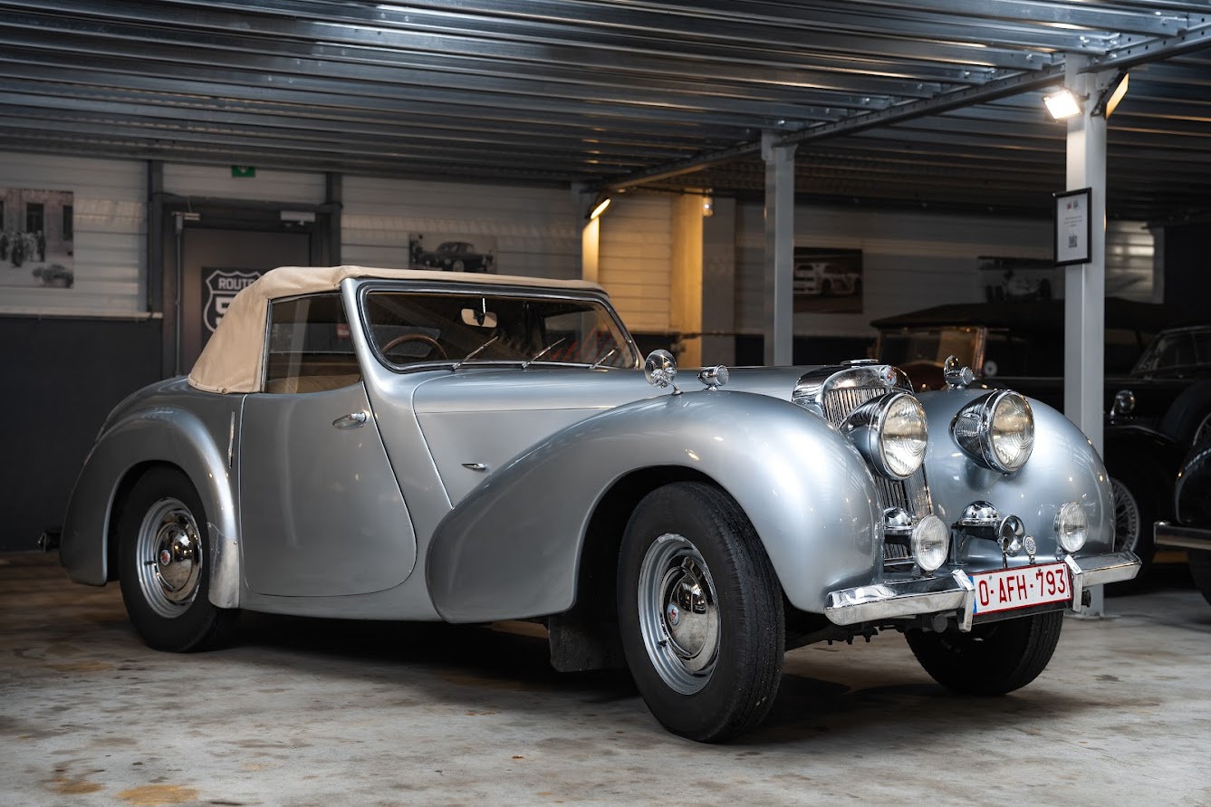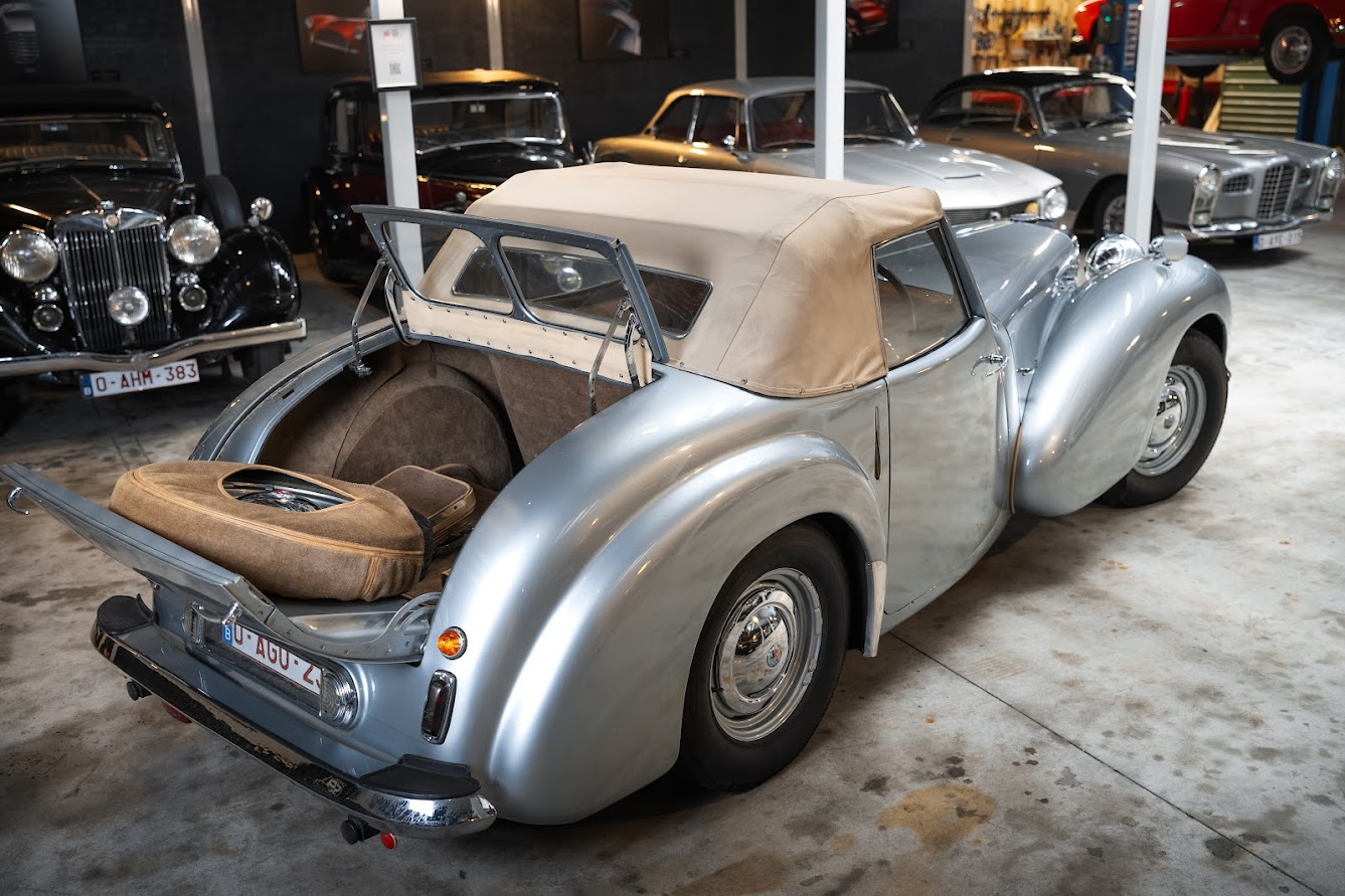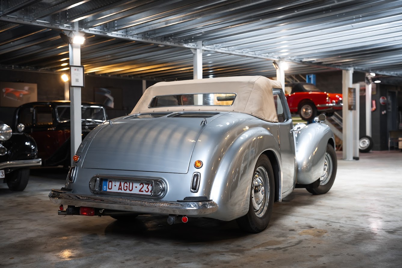 The 1949 Triumph Roadster 2000 is a rare post-war classic, with only a little over 2,000 examples produced, making it one of the most collectible Triumphs of its era. Its sweeping pre-war lines, wide chrome grille, and distinctive “dickey seat”—a rumble seat with its own windscreen—mark the end of an era in automotive design. Built with lightweight aluminum bodywork during post-war steel shortages and powered by the dependable 2088cc Standard Vanguard engine, the Roadster represents both ingenuity and charm. Today, it is admired by collectors and enthusiasts alike for its scarcity, historical significance, and unmistakable character—a true jewel of Triumph’s heritage.